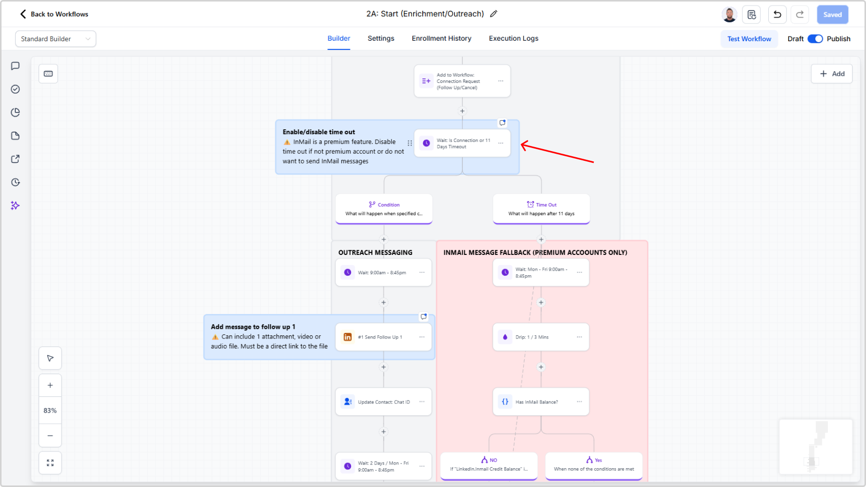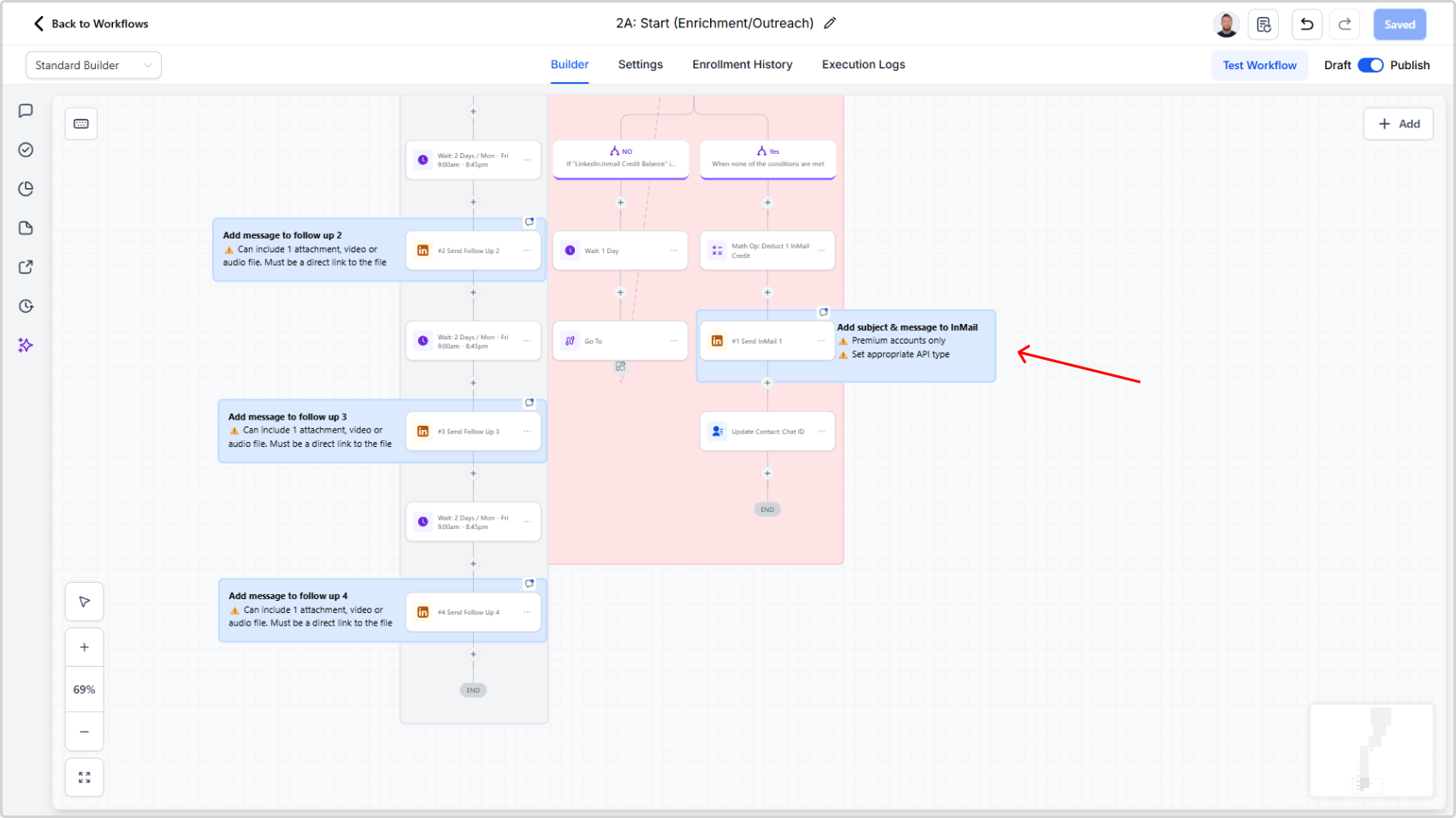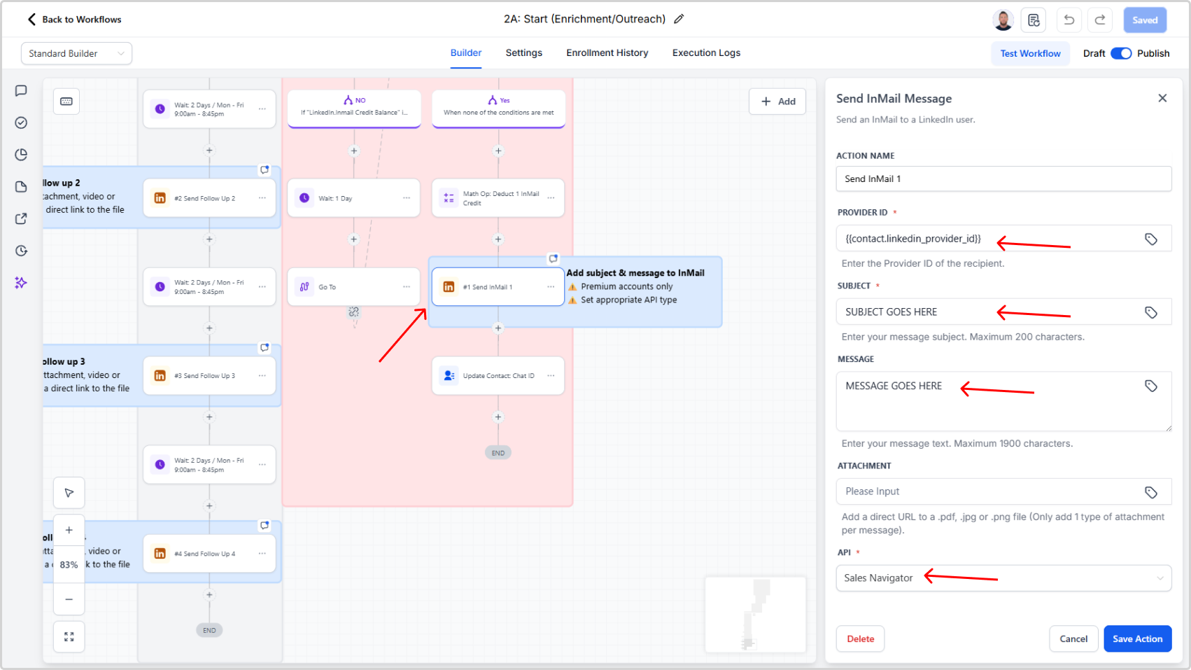- Locate the action "Send InMail 1" and click it to open configuration