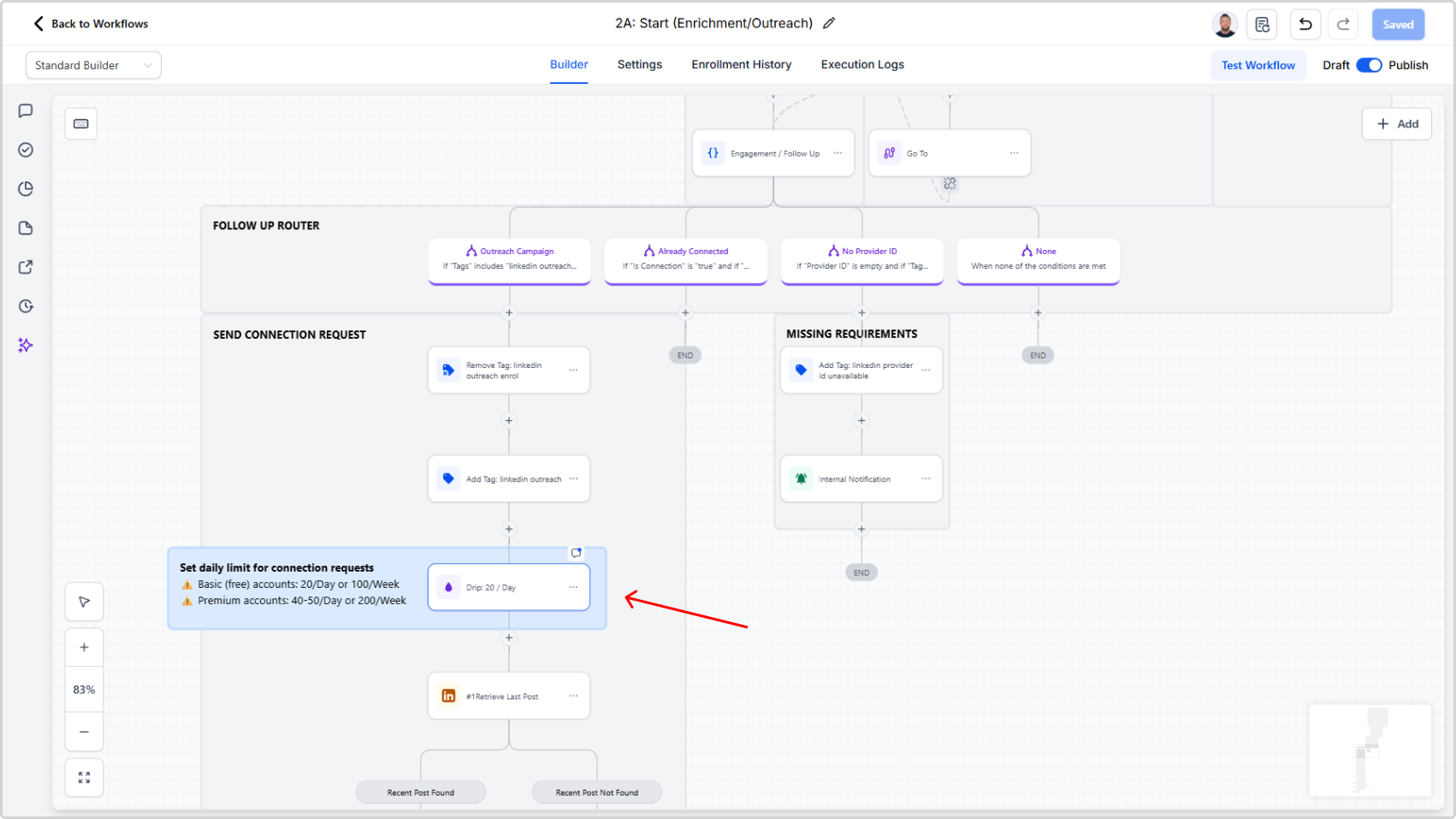 - Set the daily rate limit for LinkedIn connection requests